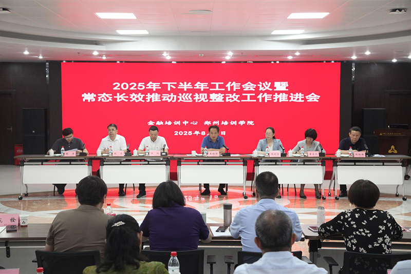 8月5日,中国金融培训中心、人民银行郑州培训学院(以下简称中心和学院)2025年下半年工作会暨常态长效推动巡视整改工作推进会在学院召开。会议学习传达了2025年下半年中国人民银行工作会议暨常态长效推动中央巡视整改工作推进会精神,回顾总结中心和学院2025年以来工作,分析当前形势,部署下一阶段工作。中国金融培训中心主任,人民银行郑州培训学院党委书记、院长王维强出席会议并讲话,中心和学院领导周晓静、王鹏、霍占仙、赵森、郝红林、胡涛出席会议并就分管工作进行部署。